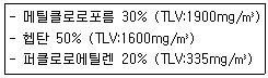 혼합유기용제의 구성비(중량비)는 다음과 같을 때, 이 혼합물의 노출농도(TLV)는?