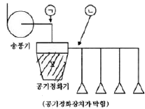 다음 그림과 같이 국소배기장치에서 공기정화기가 막혔을 경우 정압의 절대값은 이전측정에 비해 어떻게 변하는가?