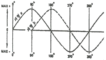 그림에서 파형 a와 b의 위상차이는 몇 도인가?