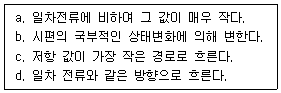 다음 보기 중 시편에 유도된 와전류의 특성들로 짝지어진 것은?