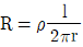 고유저항이 ρ(Ω-m), 길이가 l(m), 반지름이 r(m)인 전선의 저항 R(Ω)은?