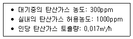 다음과 같은 조건에서 재실인원이 60명인 강의실의 필요 환기량은?