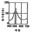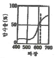 다음은 빨강, 노랑, 초록, 파랑의 분광분포 곡선이다. 노랑(Yellow)의 분광분포 곡선은?