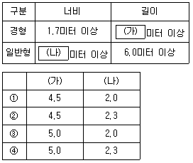 「주차장법 시행규칙」상 평행주차형식에 대한 주차단위 구획기준이다. (가), (나)에 들어갈 내용을 바르게 연결한 것은?