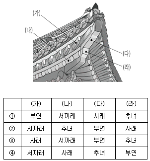한국 건축의 처마 부분 (가)~(라) 부재의 명칭을 바르게 연결한 것은?