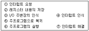 인터럽트 요청 및 서비스에 관한 순서가 옳게 나열된 것은?