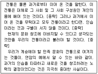 다음 글에서 설명하고 있는 전통의 예(例)로 가장 적절하지 않은 것은?