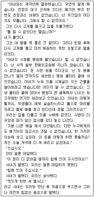 인물들은 구체적인 이름 없이 '사내', '안', '나' 등으로 익명화되어 있다.