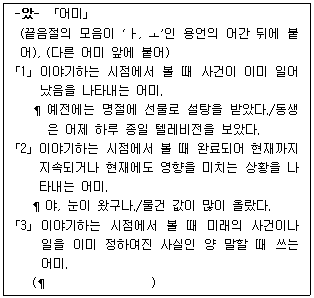 다음은 「표준국어대사전」에서 가져온 것이다. 빈칸에 들어갈 예문으로 가장 적절하지 않은 것은?