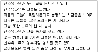 마음의 그늘이 옥말려든다고 불평하는 사람들과 산수유나무가 대비되고 있다.