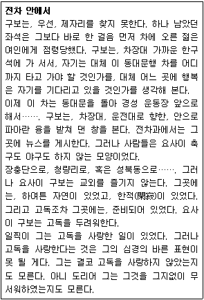여정을 따라 등장인물의 의식과 내면을 서술하고 있다.