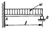 그림과 같은 부정정보의 전 길이에 균일 분포하중이 작용할 때 전단력이 0이 되고 최대굽힘모멘트가 작용하는 단면은 B단에서 얼마나 떨어져 있는가?