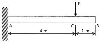 그림과 같이 직사각형 단면의 목재 외팔보에 집중하중 P가 C점에 작용하고 있다. 목재의 허용압축응력을 8MPa, 끝단 B점에서의 허용 처짐량을 23.9mm라고 할 때 허용압축응력과 허용 처짐량을 모두 고려하여 이 목재에 가할 수 있는 집중하중 P의 최대값은 약 몇 kN인가? (단, 목재의 세로탄성계수는 12GPa, 단면2차모멘트는 1022×10-6 m4, 단면계수는 4.601×10-3 m3 이다.)