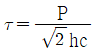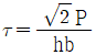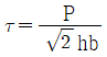 그림과 같은 양쪽 옆면 필릿 용접에서 오른쪽으로 P의 하중이 작용하고 있다. 용접부 목걸이를 h라고 할 때 용접부에 작용하는 전단응력(τ) 식으로 옳은 것은?