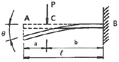 다음 그림과 같이 C점에 집중하중 P가 작용하고 있는 외팔보의 자유단에서 경사각 θ를 구하는 식은? (단, 보의 굽힘 강성 EI는 일정하고, 자중은 무시한다.)