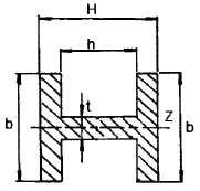 그림의 H형 단면의 도심축인 Z축에 관한 회전반경(radius of gyration)은 얼마인가?