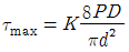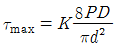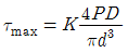 코일 스프링에서 축방향 작용하중을 P, 코일의 유효지름을 D, 소선의 지름을 d, Wahl의 응력수정계수를 K라 할 때 최대전단응력 τmax 를 구하는 식으로 옳은 것은?