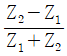 탄소강(음향 임피던스 Z1)의 한 쪽에 스테인리스강(음향임피던스 Z2)을 클래딩(cladding)하였다. 탄소강측으로부터 2MHz로 수직탐상했을 때 경계면에서의 음압반사율은?
