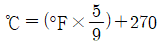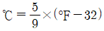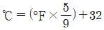 방사선투과시험에서 현상액의 온도가 규격에 화씨(°F)로 되어 있어 섭씨온도로 변환시켜 측정된 값과 비교하고자 한다. 다음 중 화씨온도(°F)를 섭씨온도(℃)로 변환하는 식으로 옳은 것은?