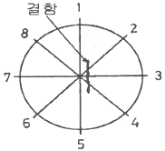 그림과 같은 결함이 있는 환봉을 수직탐상했을 때, 1~8의 각 위치에서 나타나는 현상을 설명한 것 중 틀린 것은?