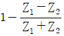 탄소강(음향 임피던스 Z1)에 스테인리스강(음향임피던스 Z2)이 클래딩되어 있다. 탄소강 측에서 2MHz로 수직탐상하였을 때 경계면에서의 음압 반사율은?
