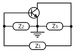 LC 발진회로에서 귀환회로에 3소자의 연결 형태에 따라 발진회로를 구분할 수 있다. 다음 발진회로의 발진 조건은? (단. 항상 Z1, Z2, Z3 소자는 부호가 같다고 가정한다.)