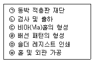 다음은 양면 PCB 제조공정의 주요 단계를 순서 없이 늘어놓은 것이다. 제조공정의 순서로 올바른 것은?