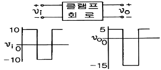 이상적인 다이오드를 사용하여 그림에 나타낸 기능을 수행할 수 있는 클램프회로를 만들 수 있는 것은?(단, Vi= 입력파형, Vo = 출력파형이다.)