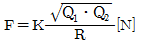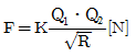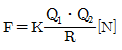 각각의 전기량이 Q1, Q2이고 거리가 R인 대전체 사이에 작용하는 힘 F는? (단, K는 비례상수이다)