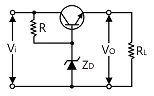 다음 정전압 안정화 회로에서 제너다이오드 ZD의 역할은? (단, 입력전압은 출력전압보다 높다.)