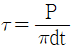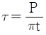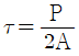두께가 t(mm)인 철판을 직경 d(mm)인 원형의 펀치로 전단하여 관통시킬 때 전단응력(τ)을 계산하는 식으로 옳은 것은? (단, P=전단하중, A=전단면적이다.)