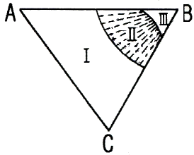 다음의 3원 공정형 상태도에서 Ⅱ영역의 자유도는? (단., Ⅰ영역은 융액, Ⅱ 영역은 고체+융액, Ⅲ 영역은 고체이며, 압력이 일정하다.)