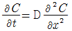 금속에 있어서 Fick의 확산 제2법칙의 식은? (단, D는 확산계수이며, 농도 C를 시간 t와 장소 γ의 함수로 생각하여 확산이 일어난다고 가정한다.)