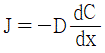 Fick의 제1법칙 식으로 옳은 것은? (단, D는 확산점수이다.)
