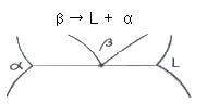 다음 그림과 같은 상태도는 어떤 반응인가? (단, α, β는 고용체이며, L은 용액이다.)