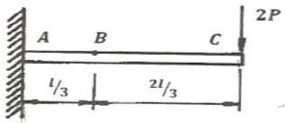 보의 자중을 무시할 때 그림과 같이 자유단 C에 집중하중 2P가 작용할 때 B점에서 처짐 곡석의 기울기각은?