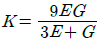 탄성 계수(영계수) E, 전단 탄성 계수 G, 체적 탄성 계수 K사이에 성립되는 관계식은?