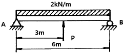 그림과 같은 단순지지보에서 2 kN/m의 분포하중이 작용할 경우 중앙의 처짐이 0이 되도록 하기 위한 힘 P의 크기는 몇 kN인가?