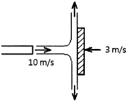 그림과 같이 유속 10 m/s인 물 분류에 대하여 평판을 3 m/s의 속도로 접근하기 위하여 필요한 힘은 약 몇 N인가? (단, 분류의 단면적은 0.01 m2이다.)