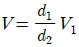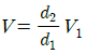 그림과 같은 원형관에 비압축성 유체가 흐를 때 A단면의 평균속도가 V1일 때 B단면에서의 평균속도 V는?