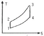 다음 그림과 같은 오토 사이클의 효율(%)은? (단, T1=300K, T2=689K, T3=2364K, T4=1029K이고 정적비열을 일정하다.)