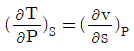 엔트로피(s) 변화 등과 같은 직접 측정할 수 없는 양들을 압력(P), 비체적(v), 온도(T)와 같은 측정 가능한 상태량으로 나타내는 Maxwell 관계식과 관련하여 다음 중 틀린 것은?(오류 신고가 접수된 문제입니다. 반드시 정답과 해설을 확인하시기 바랍니다.)