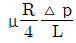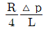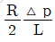 반지름 R인 파이프 내에 점도 μ인 유체가 완전발달 층류유동으로 흐르고 있다. 길이 L을 흐르는데 압력 손실이 Δp만큼 발생했을 때, 파이프 벽면에서의 평균전단응력은 얼마인가?