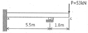 다음 그림과 같이 집중하중 P를 받고 있는 고정 지지보가 있다. B점에서의 반력의 크기를 구하면 몇 kN인가?