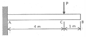 그림과 같은 직사각형 단면의 목재 외팔보에 집중하중 P가 C점에 작용하고 있다. 목재의 허용압축응력을 8MPa, 끝단 B점에서의 허용 압축응력을 8MPa, 끝단 B점에서의 허용처짐량을 23.9mm라고 할 때 허용압축응력과 허용 처짐량을 모두 고려하여 이 목재에 가할 수 있는 집중하중 P의 최대값은 약 몇 kN인가? (단, 목재의 탄성계수는 12GPa, 단면2차모멘트 1022×10-6m4, 단면계수는 4.601×10-3m3이다.)