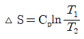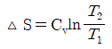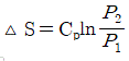 단위질량의 이상기체가 정적과정 하에서 온도가 T1에서 T2로 변하였고, 압력도 P1에서 P2로 변하였다면, 엔트로피 변화량 ΔS는? (단, Cv와 Cp는 각각 정적비열과 정압비열이다.)