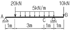아래와 같은 보에서 C점(A에서 4m 떨어진 점)에서의 굽힘모멘트 값은 약 몇 kNㆍm인가?