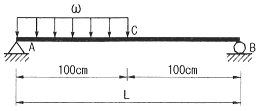 원형단면의 단순보가 그림과 같이 등분포하중 ω=10N/m를 받고 허용응력이 800Pa일 때 단면의 지름은 최소 몇 mm가 되어야 하는가?