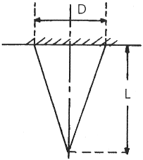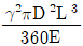 높이가 L이고 저면의 지름이 D, 단위 체적당 중량 ϒ의 그림과 같은 원추형의 재료가 자중에 의해 변형될 때 저장된 변형에너지 값은? (단, 세로탄성계수는 E이다.)