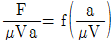 세 변의 길이가 a, 2a, 3a인 작은 직육면체가 점도 μ인 유체 속에서 매우 느린 속도 V로 움직일 때, 항력 F는 F=F(a, μ, V)로 가정할 수 있다. 차원해석을 통하여 얻을 수 있는 F에 대한 표현식으로 옳은 것은?